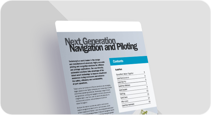 Next Generation Navigation and Piloting Trelleborg is a world leader in the design and manufacture of advanced, highly accurate Contents piloting and navigation solutions for offshore and pilotage applications. Our user-friendly, automated solutions take advantage of the SafePilot latest smart technology to improve situational awareness during maneuvers and enhance SmartPort: Better Together 3 the safety, efficiency and sustainability SafePilot Solutions 4 of port operations. Today’s ports, terminals and offshore operations are managing SafePilot Pro 5 bigger vessels to ever tighter schedules and increasingly variable SafePilot Offshore 7 and difficult operating conditions. Trelleborg’s range of smart, SafeCaptain 9 next generation piloting and navigation solutions capture and integrate data in real time, both on board and jetty-side, to SafeTug 11 improve communication, reduce delays and optimize vessel throughput. SafeCrane 13 Multiple information sources are used to continuously After-sales 14 capture navigational data to within 1cm accuracy, which SafePilot Hardware 15 is then relayed and filtered in real time using advanced smart technology and piloting software. Pilots and navigators benefit from a more accurate, situational overview that gives greater control, improves decision-making and minimizes incidents due to human error. Marine operations become safer, smarter and more efficient. 2