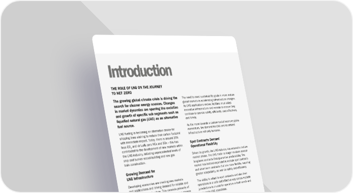 Introduction THE ROLE OF LNG ON THE JOURNEY TO NET ZERO The growing global climate crisis is driving the The need to meet sustainability goals in more mature search for cleaner energy sources. Changes global markets is accelerating infrastructure changes. in market dynamics are spurring the evolution As LNG applications evolve, facilities must adapt and growth of specific sub segments such as innovative infrastructure and vessels to ensure they liquefied natural gas (LNG) as an alternative continue to operate safely, efficiently, cost-effectively, fuel source. and timely. As the move towards a carbon-neutral economy gains LNG fueling is becoming an alternative choice for momentum, the demand for LNG and its related shipping lines wishing to reduce their carbon footprint infrastructure will only increase. with immediate impact. Today, there is around 20% less CO and virtually zero NOx and SOx – this has 2 Spot Contracts Demand contributed to the development of new markets within Operational Flexibility the LNG industry, initiating unprecedented levels of ship and bunker vessel building and new gas Driven by growth, the LNG industry has entered a mature- train construction. market phase. The LNG trade no longer revolves around long-term contracts that guarantee predictability. The Growing Demand for market has instead expanded to include spot contracts LNG Infrastructure and short-term contracts that are more flexible, requiring greater adaptability, as well as safety and efficiency. Developing economies are creating new markets and applications and driving demand for reliable and The ability to adapt to spot contracts and also their durable LNG infrastructure. This consists primarily of operations in a safe and effective way across multiple tankers, import and export terminals, floating storage jurisdictions is crucial for operators in both small- and facilities, bunker vessels, and inland storage plants. large-scale LNG operations.